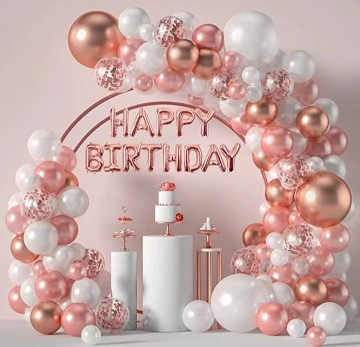Pink, golden and White Balloons, Garland Arch Kit, 102 pcs for Baby Shower Birthday Wedding Party Decorations